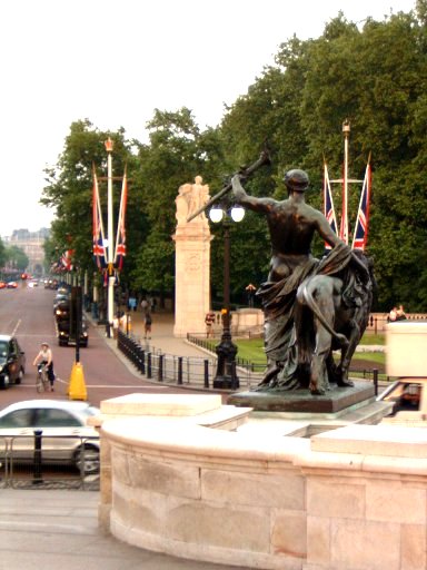 Queen Victoria Memorial ¾Õ¿¡ ¿Ã¶ó¼¼ ´Ù½Ã ºÏµ¿ÂÊÀÇ The MallÀ» ¹Ù¶óº¸°í ÂïÀº »çÁøÀÌ´Ù. ¾Õ¿¡ º¸ÀÌ´Â The MallÀÇ ÀÚÁÞºû ±æÀ» µû¶ó °ÉÀ¸¸é ¿À¸¥ ÆíÀ¸·Î´Â St. James's ParkÀ̶ó´Â ³ÐÀº °ø¿øÀ» º¼ ¼ö ÀÖ°í, ¿ÞÆíÀ¸·Î´Â St. James±ÃÀ» º¼ ¼ö°¡ ÀÖ´Ù. St. James±ÃÀº 1837³â Victoria¿©¿ÕÀÌ ÁïÀ§Çϰí Buckingham±ÃÀÌ ¿Ï¼ºµÇ±â ÀÌÀü, ±×·¯´Ï±î William 4¼¼¶§±îÁö ¿µ±¹¿Õ½ÇÀÇ °Åó·Î¼ »ç¿ëµÇ¾ú´ø ±ÃÀüÀ̾úÀ¸¸ç, ±× Àü¸éÀÌ Buckingham±Ã ¸øÁö ¾Ê°Ô ¸Å¿ì ¾Æ¸§´ä´Ù´Â ´À³¦À» ³»°Ô ÁÖ¾ú´Ù.
